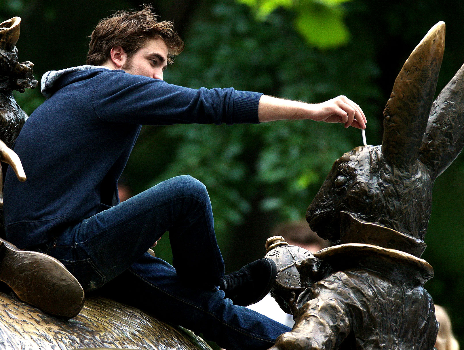 Tyler smoking on Alice in Wonderland Statue – brace yourselves – here he is …  Please no anti-smoking propoganda – if you don’t like it – don’t look.  Oh and no HQ because smoking HQ really is bad for your health.