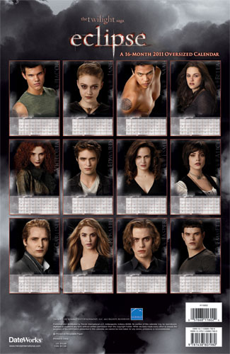Here we have a new 16 month 2011 Eclipse calendar. The calendar doesn’t seem to be available for purchase as yet but we will update once this info becomes available.  Hmm, I have one complaint & you all know what I am going to say – not enough Rob as Eddie. More Eddie next time please peoples. One pic is just not good enough. Thanks to the gorgeous Gozde *waves* at our good friends & elite affie ROBsessed for the tip & Loving Rob for the find.