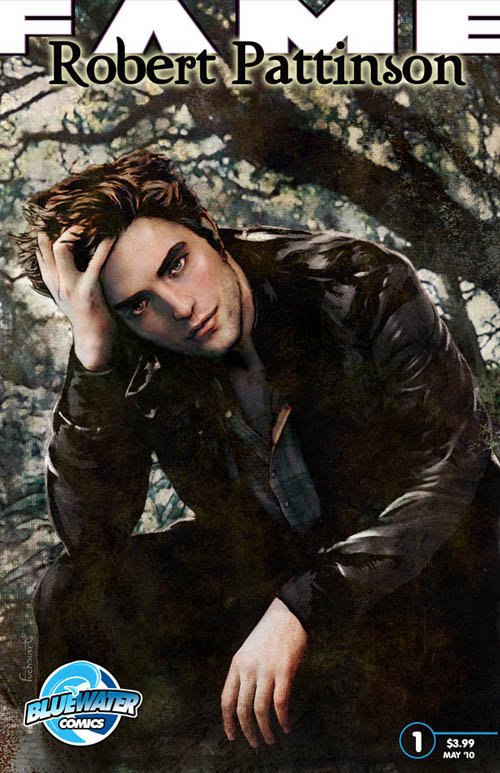 Hitting shelves at the end of May, “Fame: Robert Pattinson” is the latest in Bluewater Productions’ popular line of bio-comics. The 32-page comic promises to “trace Pattinson’s career from his first performance in Tess of the D’Urbervilles at London’s Barnes Theatre to his star turn in the Twilight movies,” and features a script by Kim Sherman and interior art by Nathaniel Ooten.
