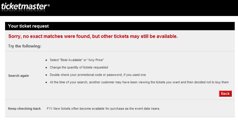 i keep trying to buy tickets i only found out today u can actually buy them at ticketmaster dfghj but it keeps giving me that msg above? i dont know what to do i really want to go 🙁