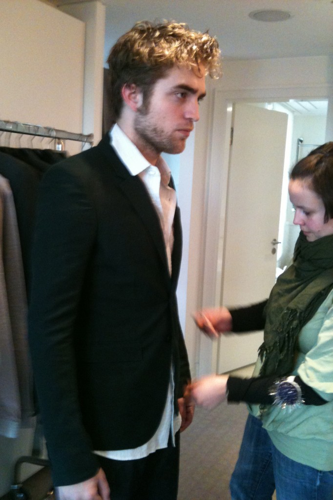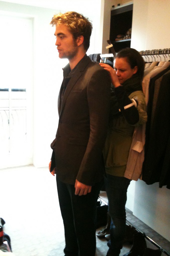 These are pics of Rob being outfitted for some public appearances for the Munich 2009 New Moon promo tour.  Yeah I still don’t get how Rob  wasn’t a more successful model *scratcheshead*.  Huge thanks to Setje and pattinsonlife for the untagged HQs.